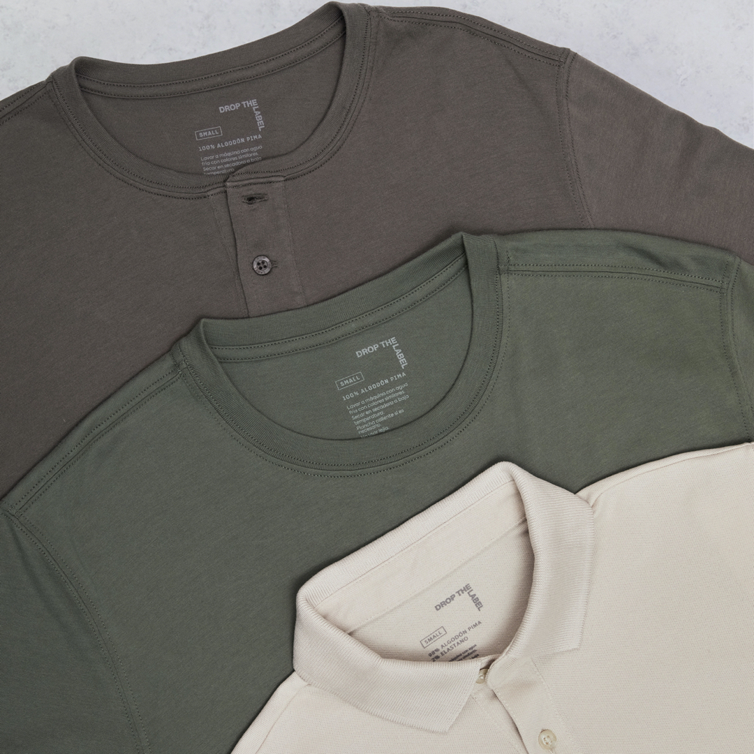 Según los primos Tubbeh, esta filosofía, aplicada a la moda, se resume en la calidad de los materiales y acabados, la comodidad de los fits y la sostenibilidad del proceso de producción. Nada más. No encontrarás etiquetas incómodas ni apliques innecesarios en una prenda de Drop the Label. De ahí que hayan adoptado el hashtag #ClothingDistilled. “Al igual que en el proceso de destilación de un líquido, donde se separan los elementos para capturar la esencia más pura, nosotros eliminamos lo innecesario para concentrarnos en lo esencial: calidad superior, diseños atemporales y comodidad excepcional,” explica Isam.Drop the Label utiliza algodón Pima peruano, conocido mundialmente por la longitud de su fibra, que garantiza no solo una suavidad incomparable sino también una durabilidad que desafía el paso del tiempo.